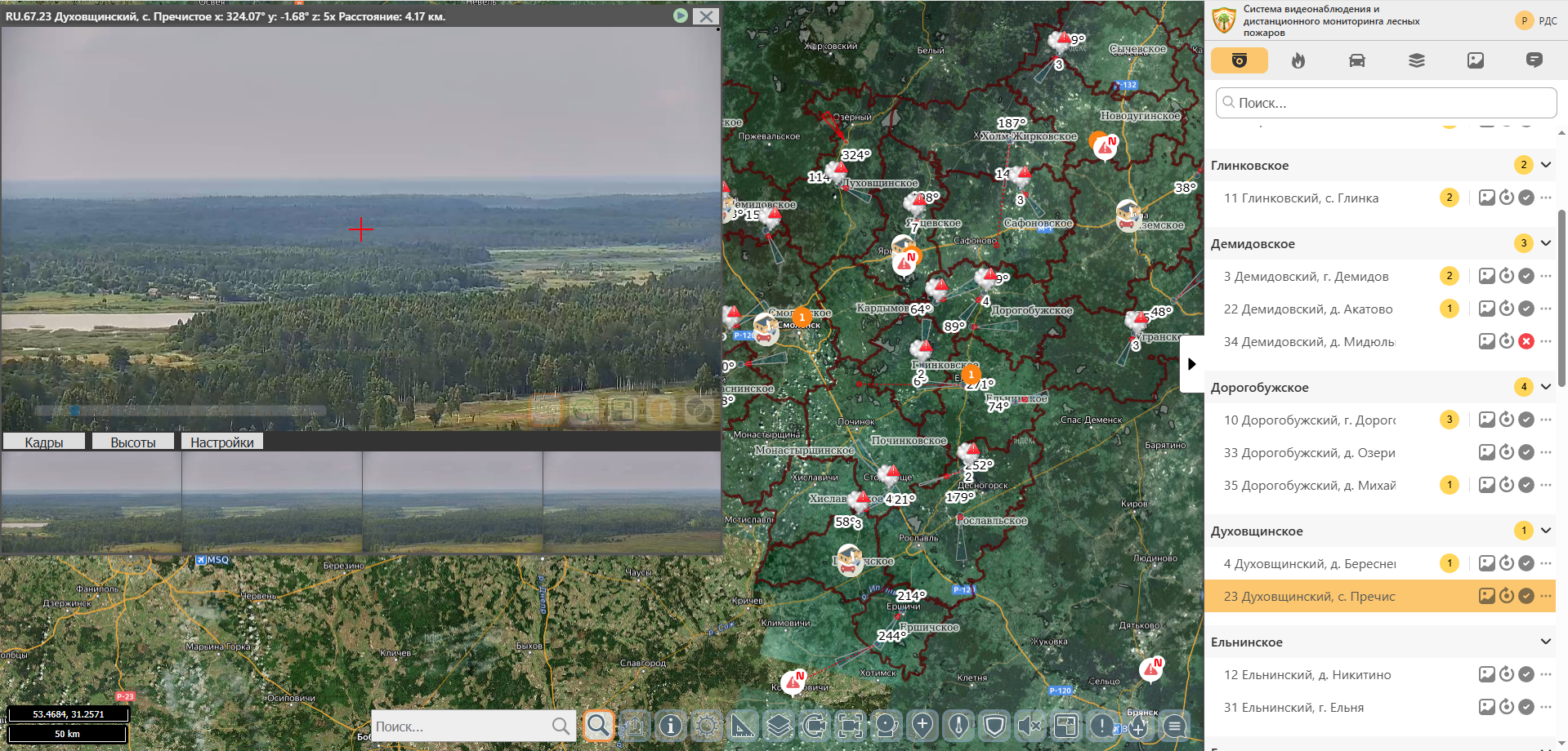 - система дистанционного видеомониторинга лесных пожаров, автоматически выявляющая очаги возгорания и задымления в лесу
